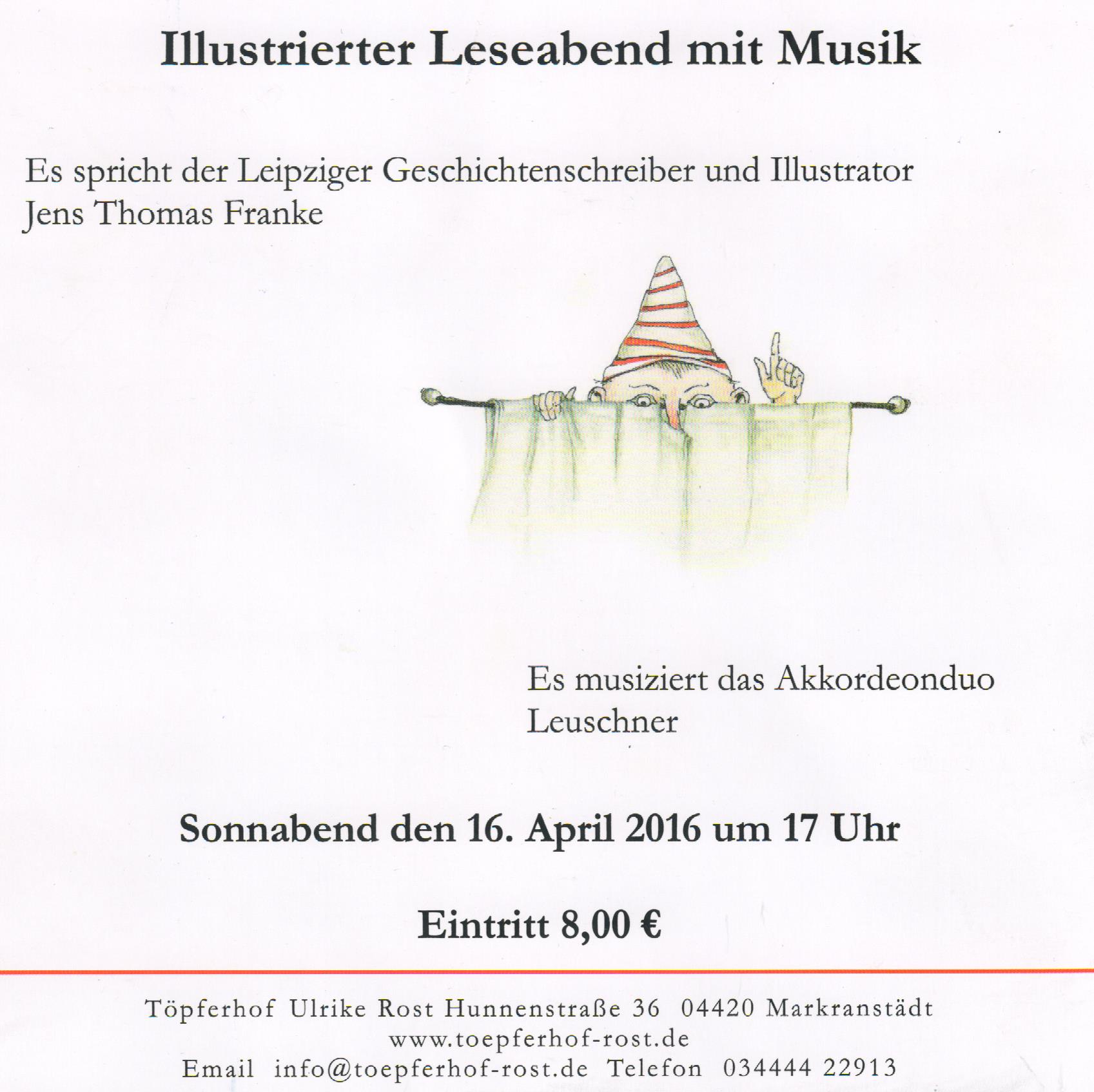 Am Samstag Abend ab 17 Uhr findet im Töpferhof Ulrike Rost ein illustrierter Leseabend mit Musik statt.